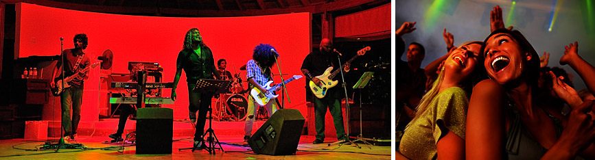 Каждая деревня имеет организаций, занимающихся анимацией и развлечениями. Меньшие атоллов, это может быть, что выбор ограничен, такие как пробелы. Kuramathi, в котором находятся три различные структуры, связанные друг с другом, может варьироваться от живой музыки на дискотеке путешествие из фойе курорта к другому каждую ночь.